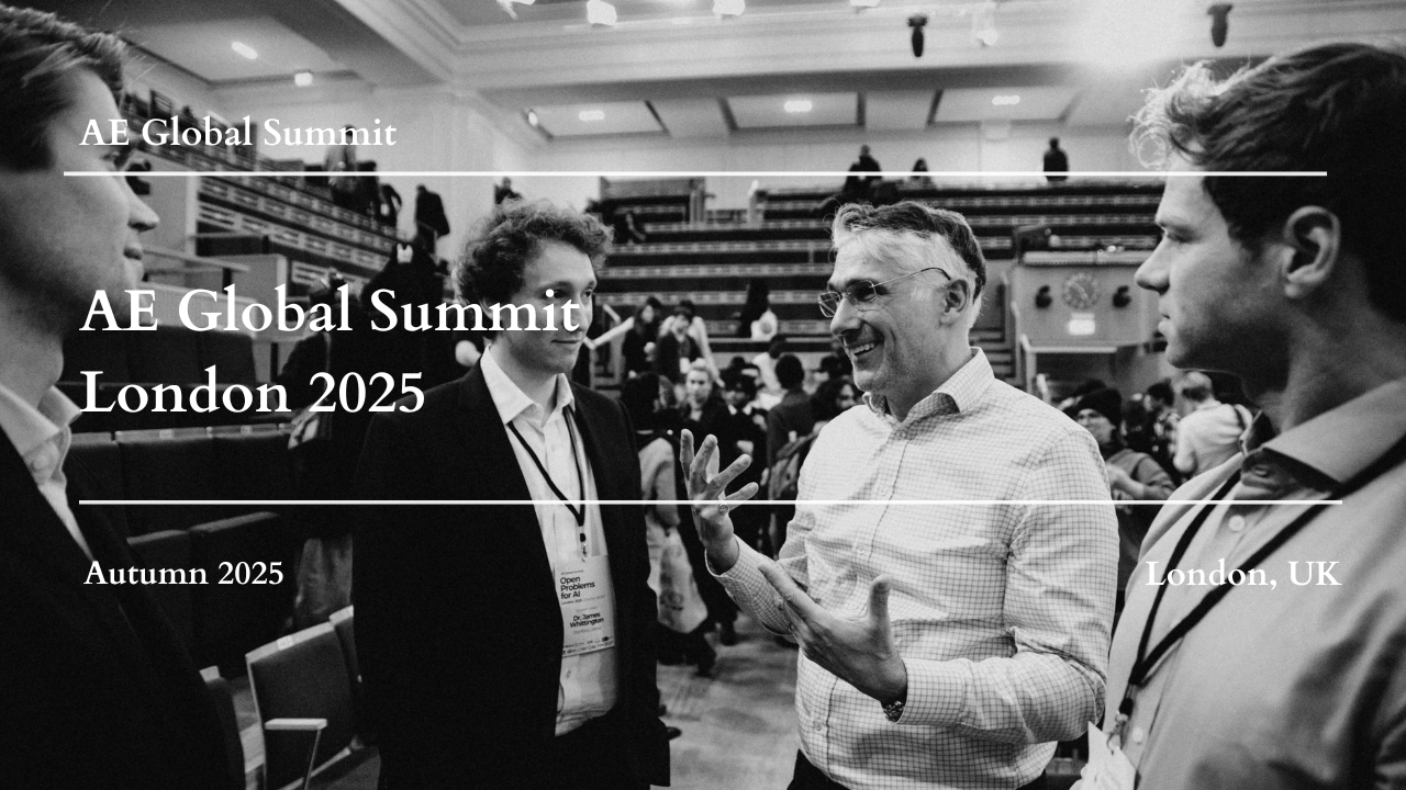 Rather than promoting finished answers, AE Global Summit is designed to surface open problems, shared constraints, and productive disagreements, and to build intellectual bridges across disciplines that rarely meet in the same room.